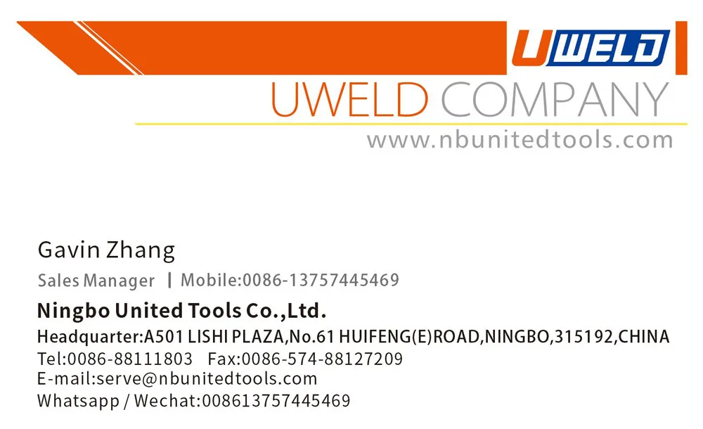 | Outlet connection: | 9/16"or requested; | Brand Name: | Uweld; |