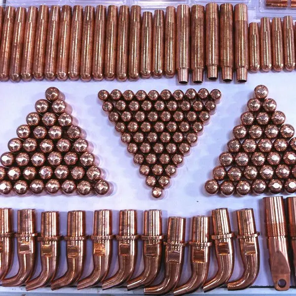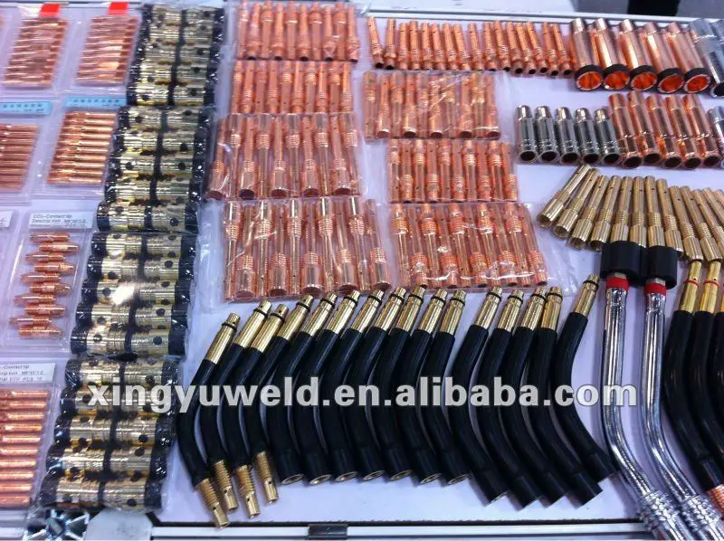 8. welding parts and accessories : contact tip, contact tip holder ,swan neck ,nozzle ,insulator, liner, line-feeder roller ,Binzel torch handle Panasonic torch handle , gas diffuser , plugs, earth clamp....