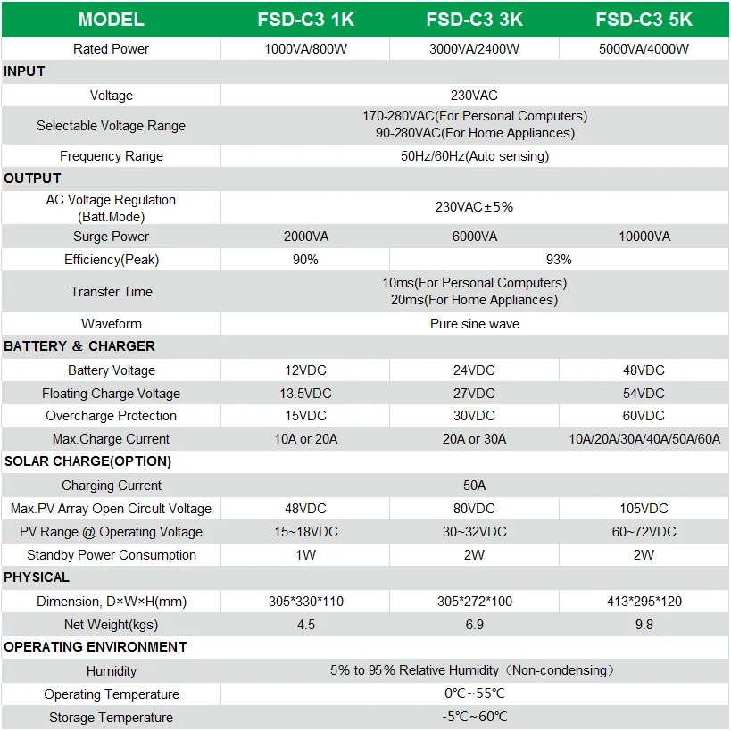 FSD-C3 1KW/3KW/5KW SOLAR INVERTER WITH PWM CONTROLLER