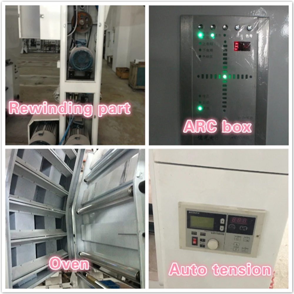 (12) Assisted oven on the top of last printing unit can prevent the last color adhesive to the printing cylinder when the color cover the whole cylinder, making the film completely dry.