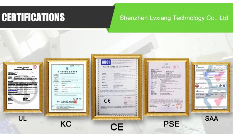 certified by CE, RoHS, FCC, UL, cUL, CB, KC, PSE etc.