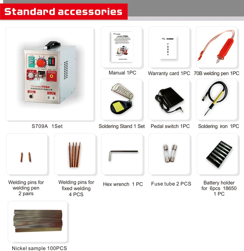 2. The welding thickness 0.03 - 0.3 mm indicates the thickness range of all alloy it can be weld, for nickel or nickel plated steel, the range is 0.08 - 0.3 mm.