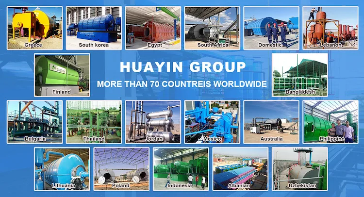 Xinxiang Huayin Renewable Energy Equipment Co., Ltd located in xinxiang city , Henan Province ,we are a producer and seller specialized in research, development, production of waste tire/ plastic pyrolysis plant , waste engine oil /pyrolysis oil distillation to diesel plant , waste oil sludge treatment equipment. We have complete machining equipment, perfect process flow, powerful technical strength, excellent product development and design capability as well as rich production experience. Our company has been certificated to ISO9001 and CE international quality management system. Thanks to our excellent product quality and good after-sales service, our ptroducts have been exported far to European Union, Asia, Southest Asia , Africa , USA .