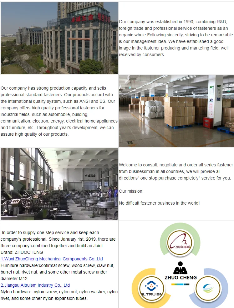 1.You are a manufacturing company or trading company? Fasteners, Bolt, nut, screws, washer, threaded rod, anchors, self tapping screws, self driling screws, stainless steel plate, etc. |