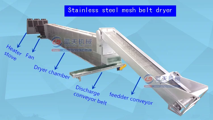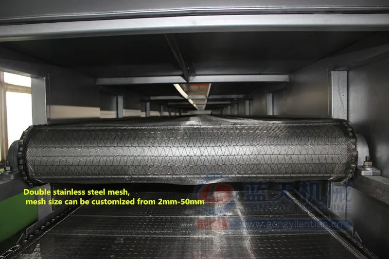 For the mesh chains inside the dryer, my factory designs to cover a fine stainless mesh. In this way, we can exchange only this fine stainless mess instead of changing mesh chains after using 2 years or 3 years ( this can reduce your future inusetment.