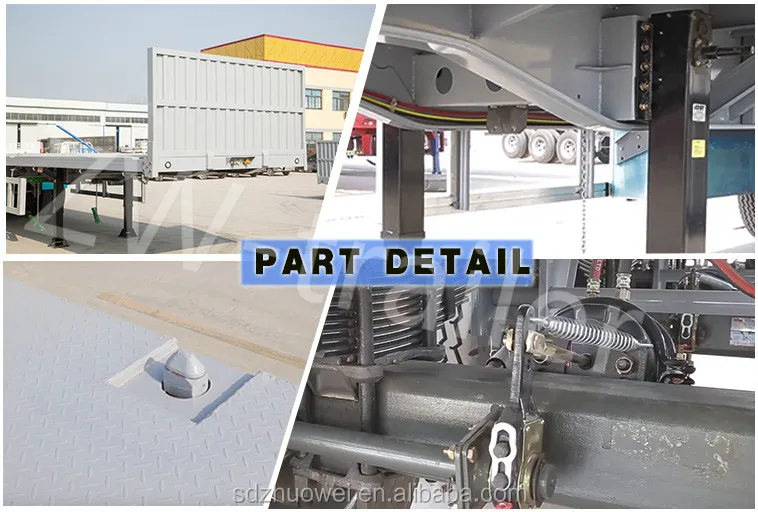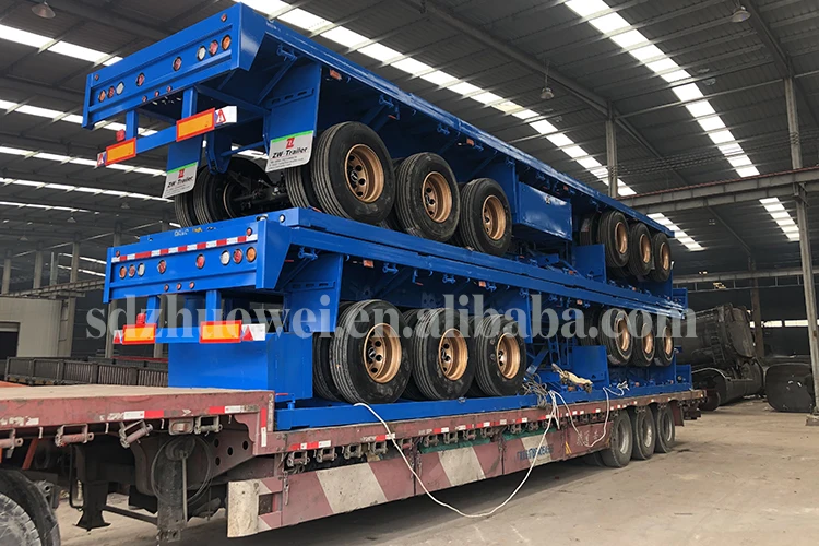 2.3 axles 40ft flatbed container truck trailer is for 60-100 tons,we can manufacture it according to your needs.