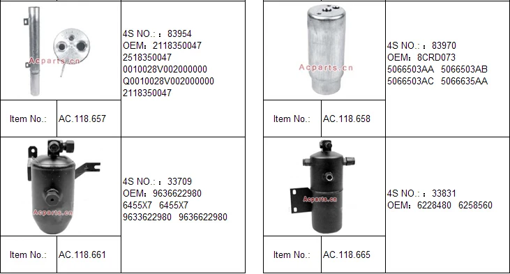 | Quality: | OE Quality, Brand New; | Supply Ability: | 40000 Set/Sets per Month R134a Filter Drier; |