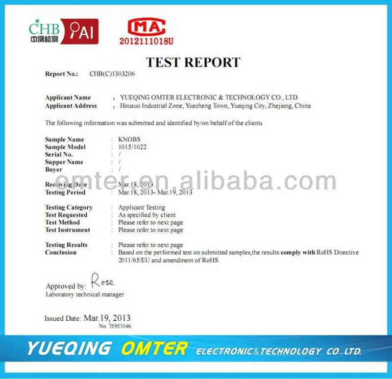 | Certificate: | ROHS certificate |
