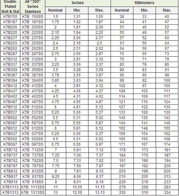 * Diameter Range: 1.31”-13.13”(33mm – 334mm)