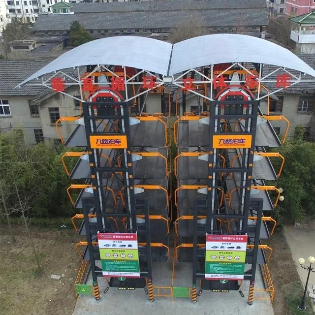 Vertical Rotary Model parking system which is a mechanical vehicle parking equipment that adopt parking system doing vertical cycle movement equipment, which working principle ia the motor drive the transmission mechanism through gear.In the traction chain, install a parking car frame each certain distance, when the motor starta, the car parking frame doing cycle movement along with the chain,which achieve car parking purpose.