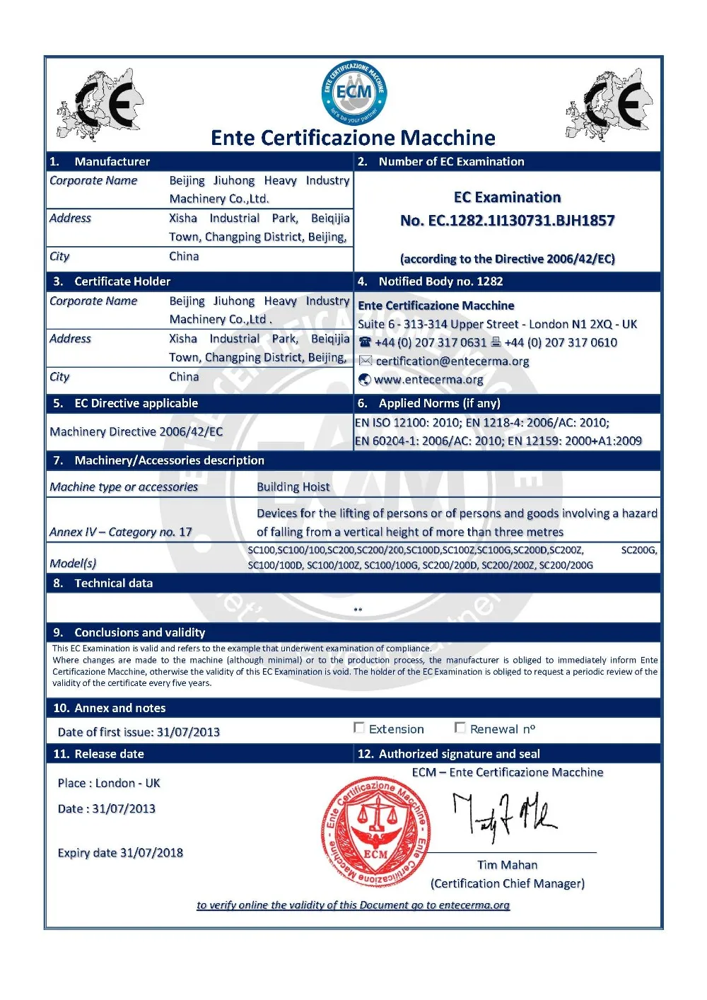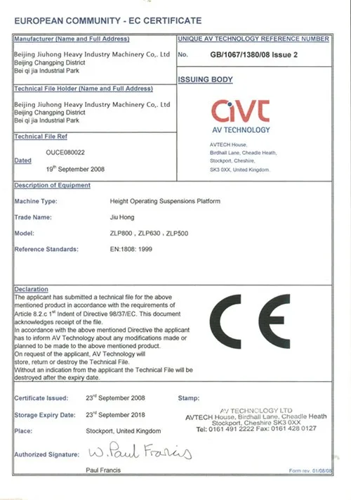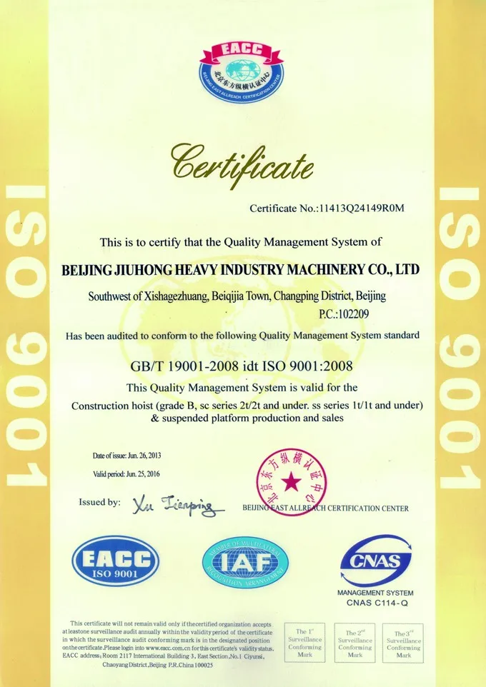 2).simple operate, automatic computer control management Beijing Jiuhong Construction Machinery Co,Ltd is a professional and accurate technique corporation that specializes in researching and producing suspended platform, construction elevator, car parking system ,work platforms, cradle, gondola,building hoist, material hoist, portal frame, suspended access equipment,which is one of the main enterprise for domestic building machine product export.In China, Jiuhong brand series product have spread all over the construction area,the product quality is first class, we could produce the all kinds of special construction machinery and non-standard equipment according to the requirements of customers.