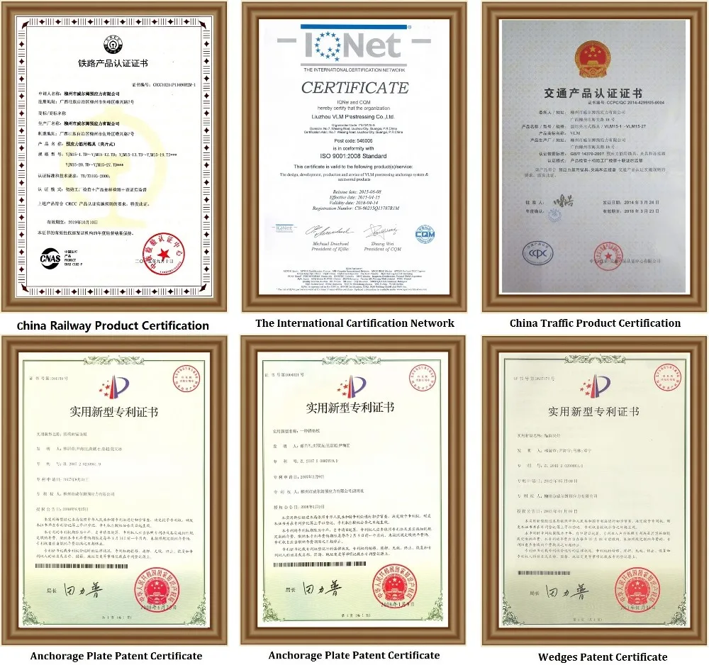 7 Being a long term supplier of China railway system and highway system, all anchor products of VLM achieved or above national standard GB/T14370-2015,China railway product standard TB/T3193-2016,China traffic product standard JT/T329-2010.