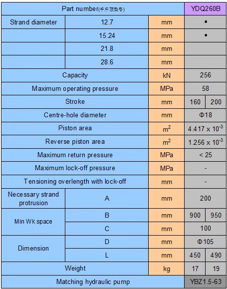 YDQ260B Stressing Jack is our superior product through self-researched and self-developed in many years of production practice, so we can supply the perfect aftersale technical support in whole equipment service time .