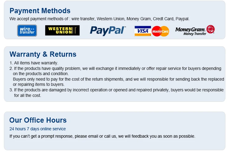 | Warranty: | 3 Months; | Payment Terms: | L/C,D/A,D/P,T/T,Western Union,MoneyGram,paypal/ credit card; |