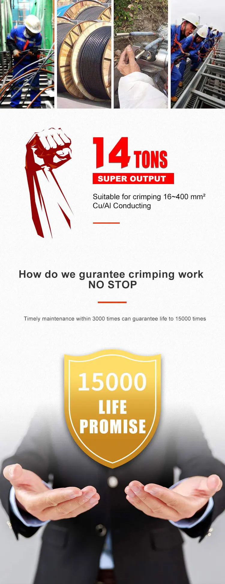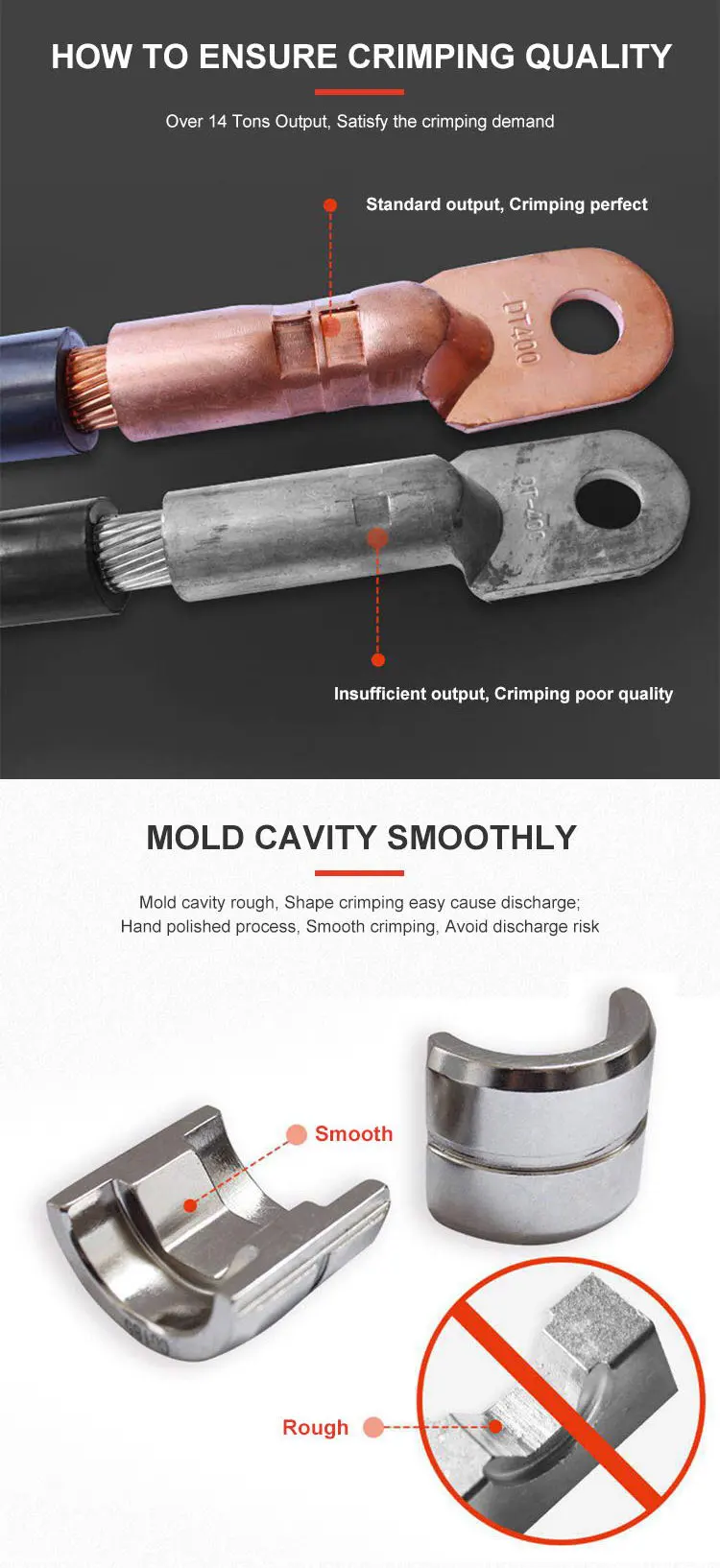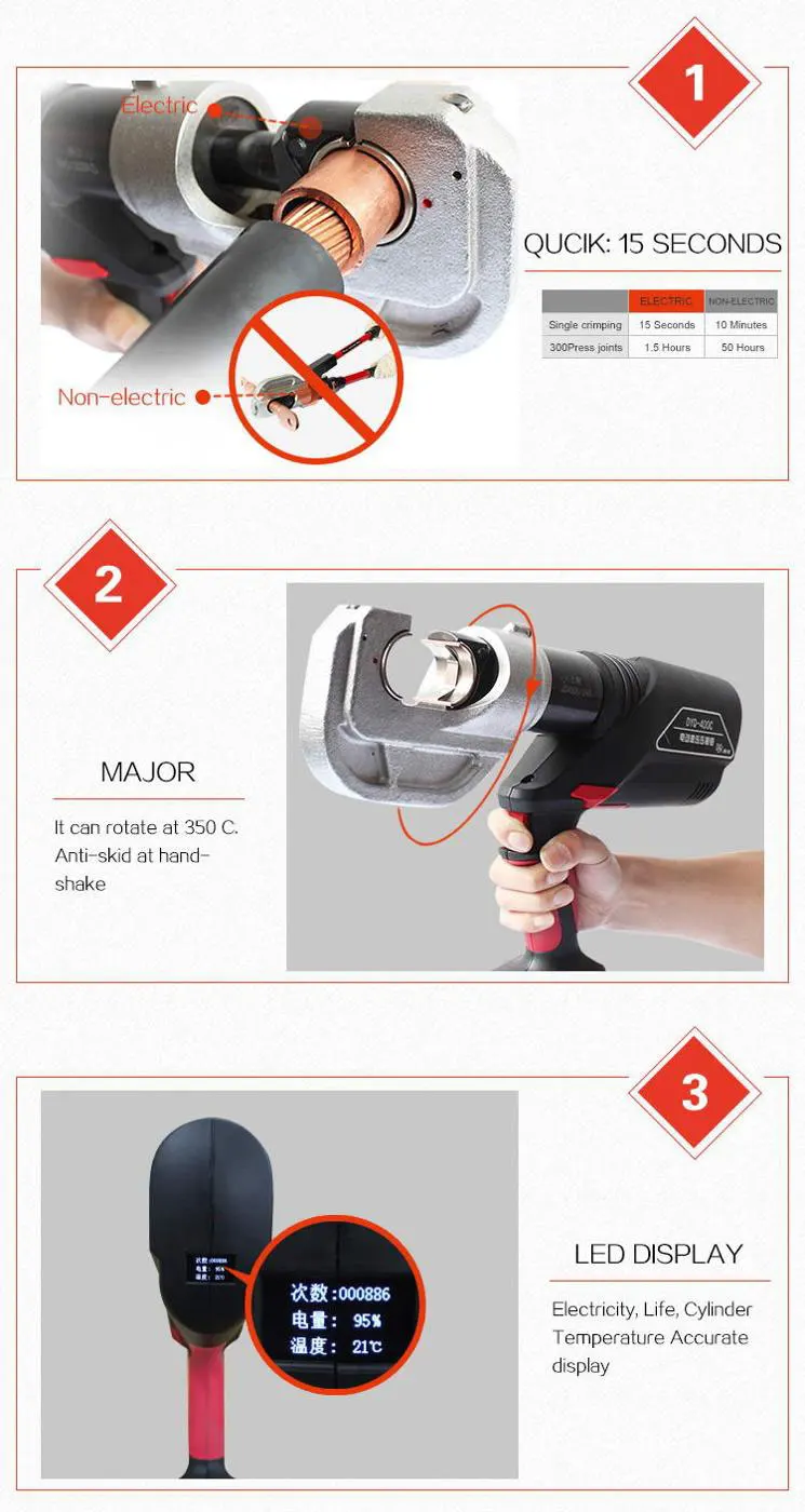 Crimping Type: hexagon Die Size: 16, 25, 35, 50, 70,95,120,150,185,240,300,400mm²