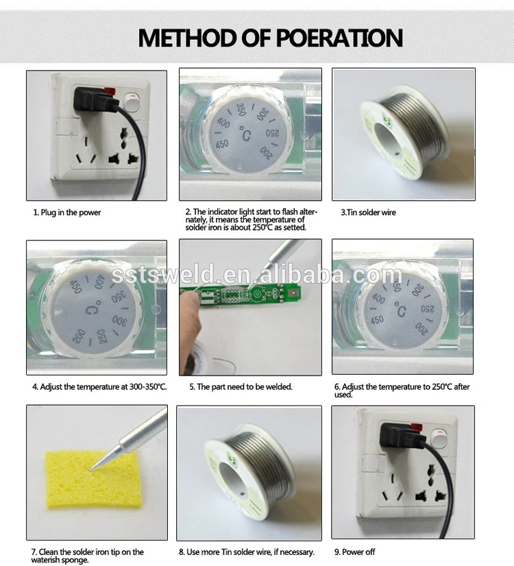 5.In case of non-stick tin, fine welding mouth burning on lighting, reoccupy after infiltrating flux on tin;