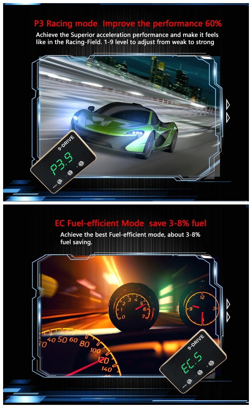 1.The product can improve the car handling ability by control the sensitivity of car throttle controller switch,and make it better adapt to different driving habit and road conditions.