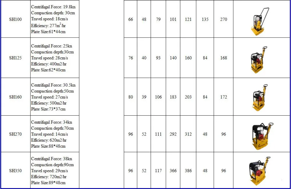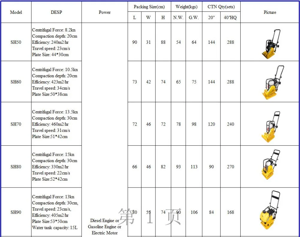 The plate compactors are good choices for building construction,curbs, gutters, around tanks, columns, footings, guard railings, drainage ditches, gas and sewer works.