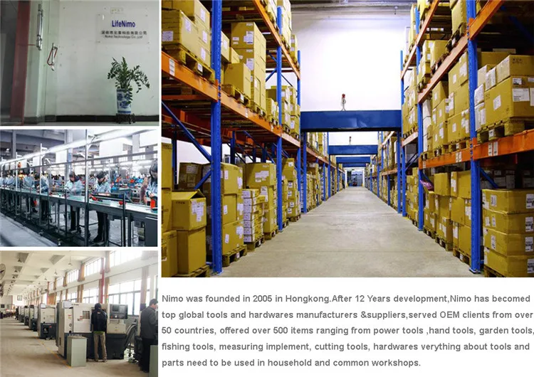 Nimo Technology Co., LTD. was founded in 2005 in Hongkong,which is headquarter of Nimo, Shenzhen Nimo Technology was founded in 2013.After 12 Years development,Nimo has becomed top global tools and hardwares manufacturers and suppliers..