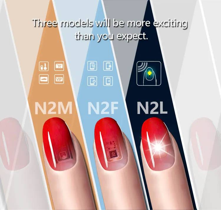 JAKCOM N2 serial smart nail comes in three models, N2M , N2F and N2L . Every model has distinctive function characteristics .