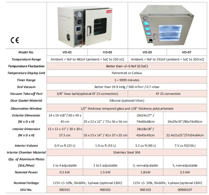 The VO-series vacuum oven from LAB1ST are economical alternatives to those expensive vacuum drying ovens made in EU or US. We offers all digital forced air and vacuum drying oven, built with polished stainless steel interior, removable racks, overheat protection, inert gas inlet, temp calibration, timing and password functions. All ovens are CE compliant. We offer OEM and customization service.