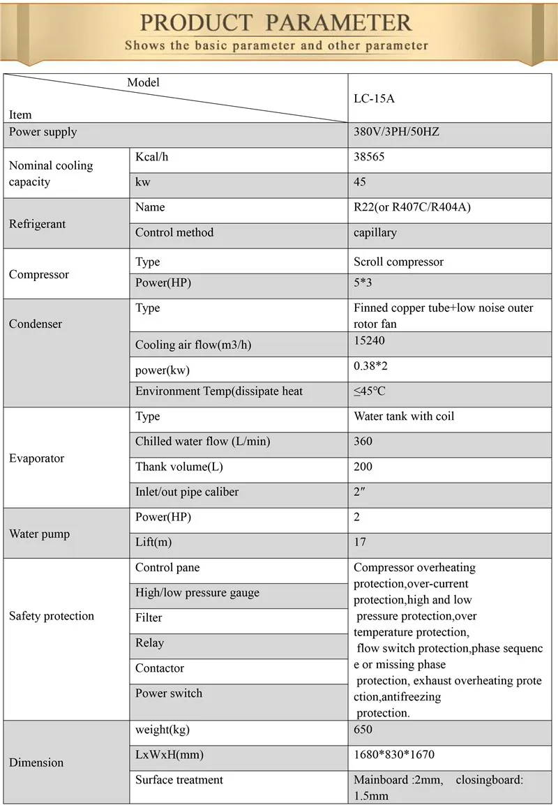 | evaporator: | water tank with coil; | Voltage: | 380V/50HZ/3Phase; |