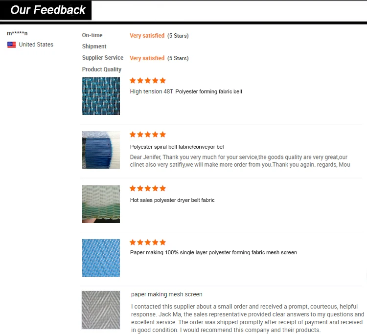 Specification for the polyester sprial dryer fabric belt :