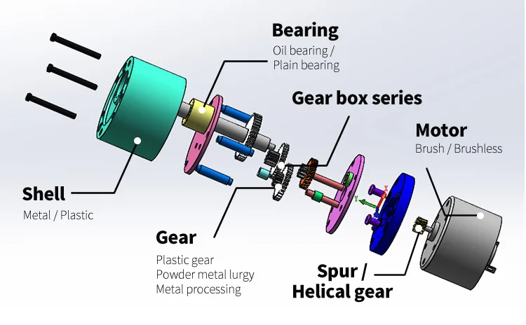 | Gearbox: | CE Rohs metal gear box; | Output Torque: | 0.1-50KG/CM; |