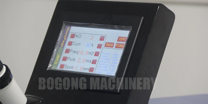 1). Energy, pulse width, frequency, spot size can be adjusted within a wide range, in order to achieve a variety of welding results. Parameter adjustment lever by a closed cavity, simple and efficient.