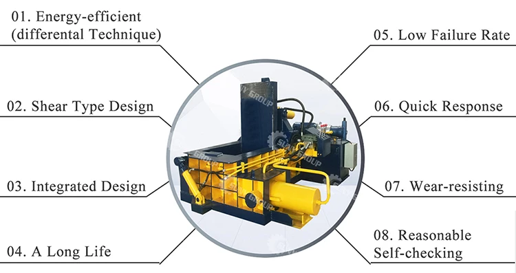 After compressing, the metal bale is easy to transport and store, so it can save transporation cost, reduce storage area and reduce the loss when smelting. Easy operation, durable and long service life, high efficiency, etc.