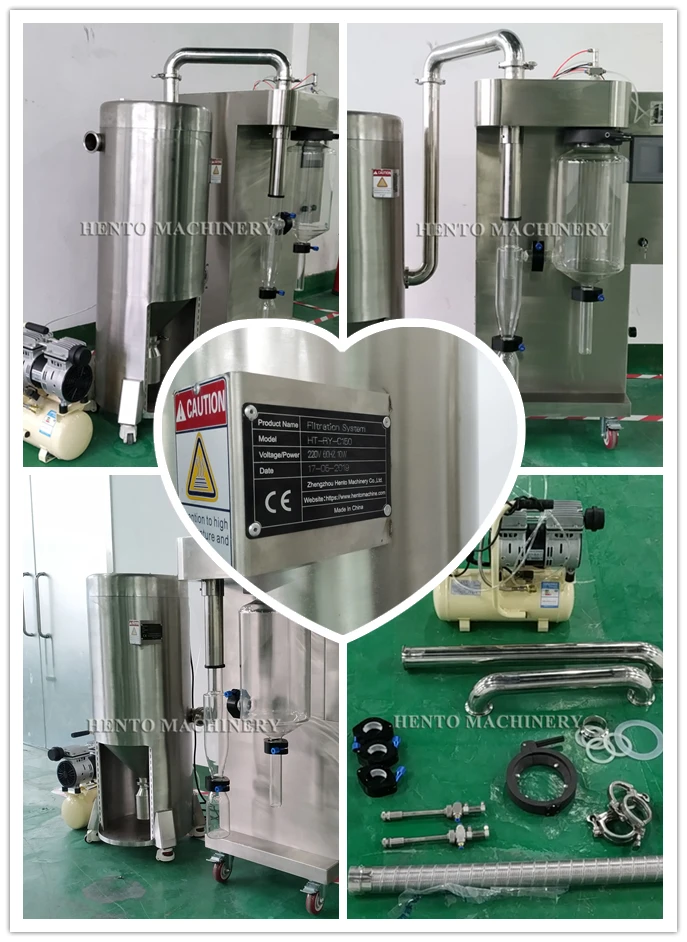 Small-sized Spray Dryer Introduction The small-sized spray dryer is designed and manufactured by absorbing international advanced technology, whose design is compact and can be moved. The major components and electrical parts are imported from famous brands. It can be used without any auxiliary equipment, and the machine is a whole, portable, self-contained one. Moreover, it also adopts PLC controller and touch-screen display. It is mainly for processing the fluid of high liquidity.