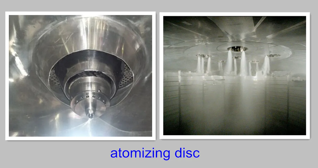 After fresh air is filtered and heated,it enters into the air distributor which on the top of the drier.The hot air in spiral form equably enters into the drying room.When liquid raw material are passed through the high-speed centrifugal sprayer on the top of the tower,it will be rotated and sprayed into the extreme slim mist liquid beads.Raw material can be dried to the final products instantly while it contact with the heatedair.Finished products are discharged continuously from bottom of the drying tower and cyclones segregator. Wasted air is discharged from blower.