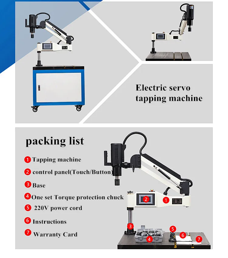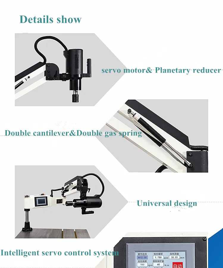 This electric tapping machine is applicable to all machinery manufacturing industry, machine tools, tooling machinery,plastic machinery, printing machinery, packaging machinery, engineering machinery, automobile and motorcycle parts,aircraft engines and other general purpose machinery industries.