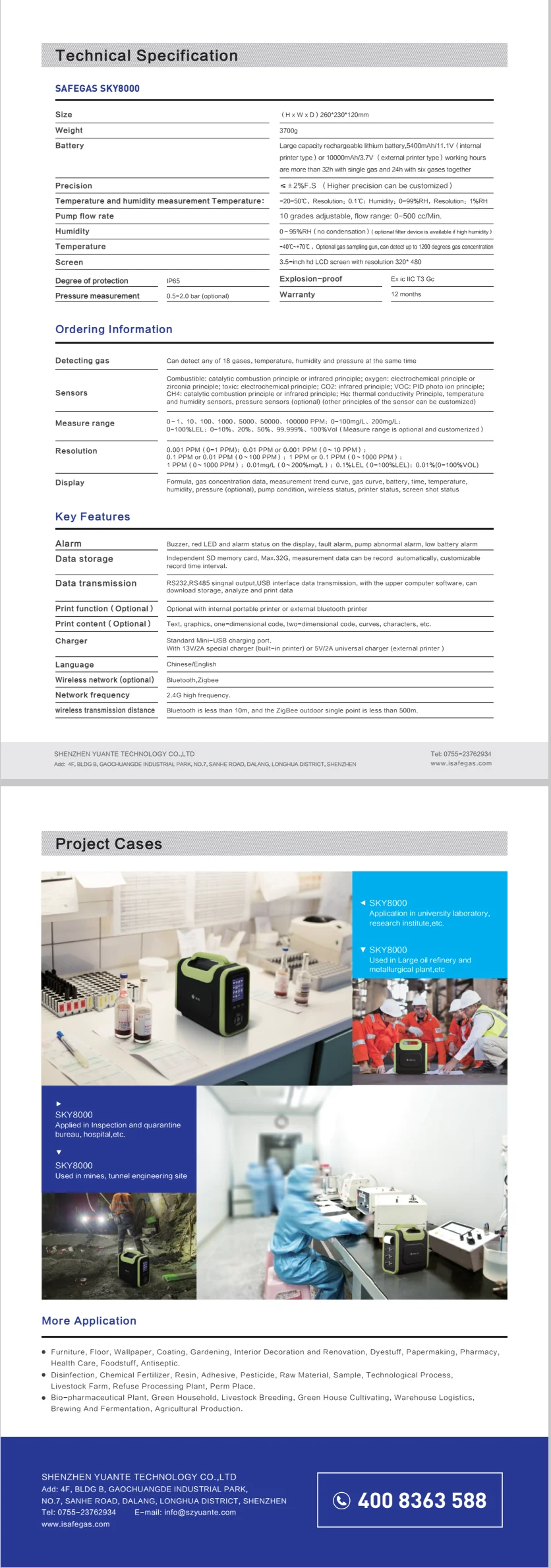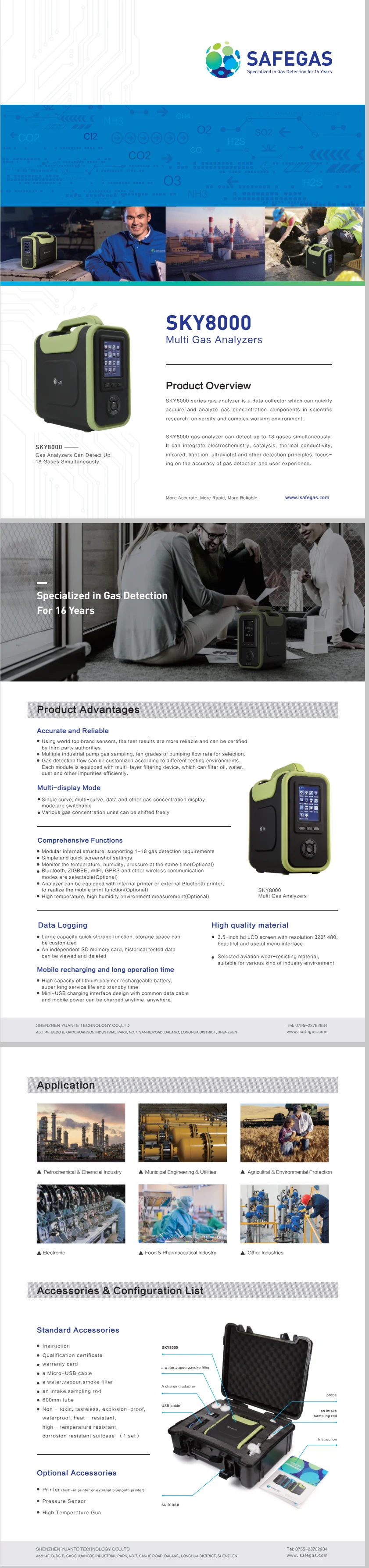 SKY8000 series gas analyzer is a data collector which can quickly acquire and analyze gas concentration components in scientific research, university and complex working environment.