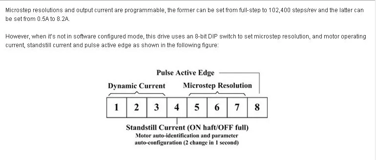 | Output current: | 2.4-7.2A; | Step pulse frequency: | 0-200KHz; |