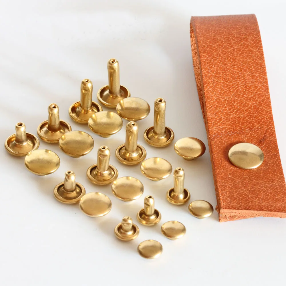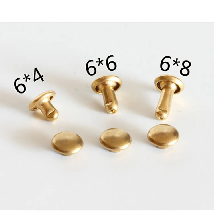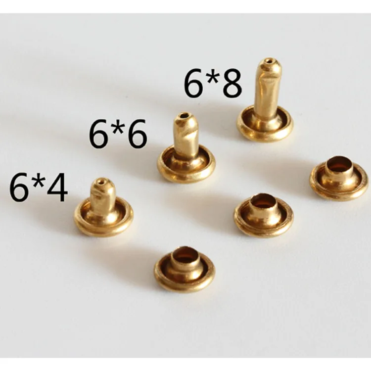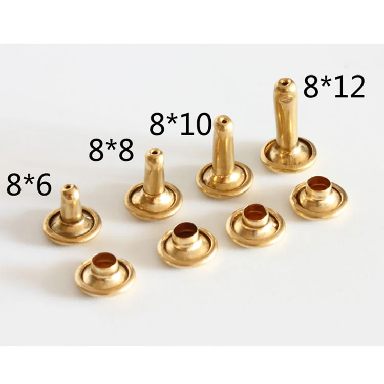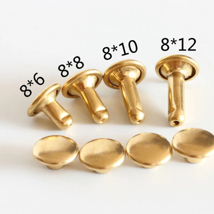 | Material: | Yellow Brass; | Product name: | Supply 4mm-12mm Non-Plating Solid Brass double cap rivet for leather; |