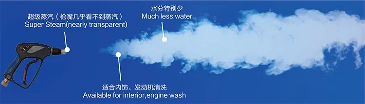 Dry Saturated Steam is the core technology for steam car washer, by dry steam we can clean car interior and engine, and dry steam has better cleaning, sterilizing, bad smell killing effect