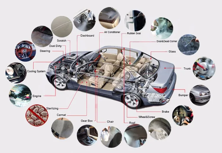 Available for Car Interior, Engine, Exterior Cleaning, Sterilizing & Odor Removing.