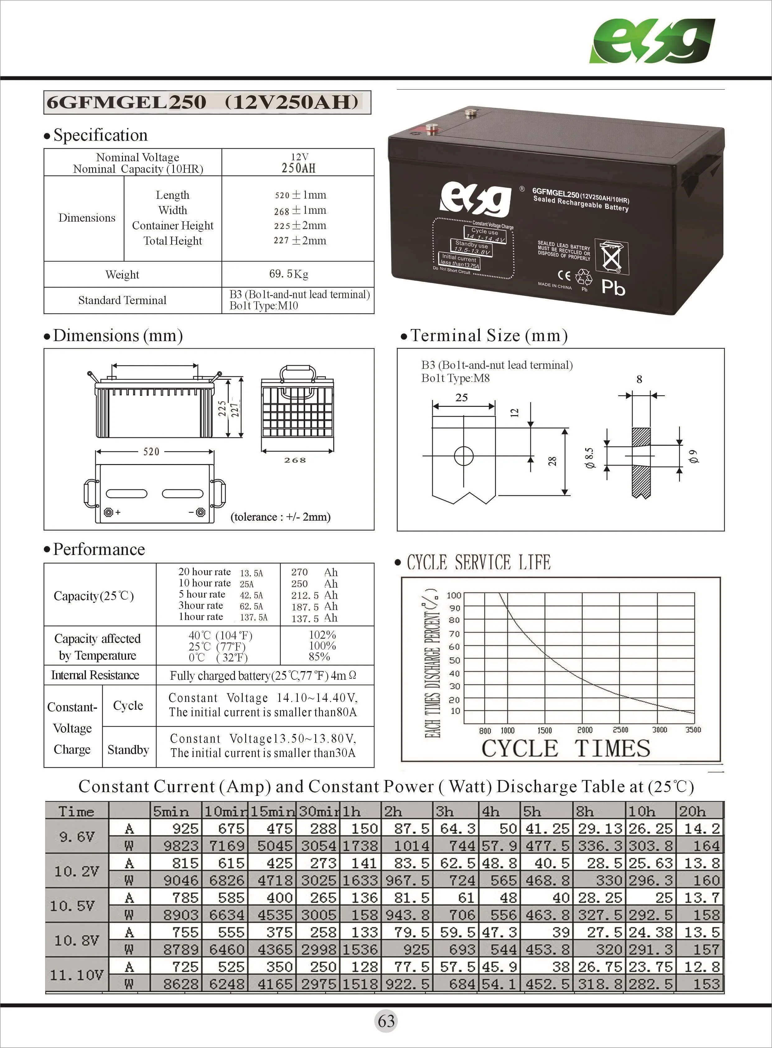 Gel MF deep cycle 12v 250ah Solar power batteryle 12v 250ah ups battery