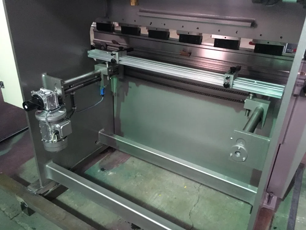 Estun. Back gauge (X axis) is controlled by computer, it adopts servo motor, ball screw and liner