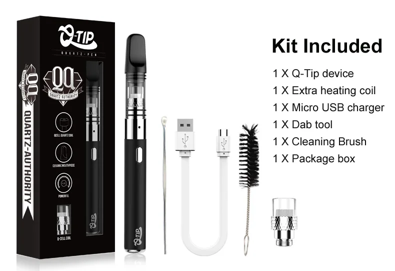 | size: | 14*14*140mm; | Package Type: | gift box package Ultra portable and discreet Airistech Q-Tip Quartz Pen Vaporizer Newest Qcell wax vape pen; |