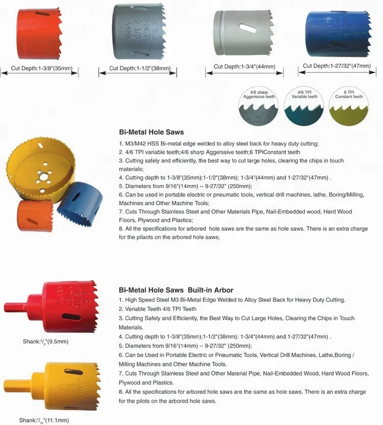 1.Hole saws made of bi-metal with hardened teeth made from a high alloyed quick steel with 8% cobalt giving extremely increased durability