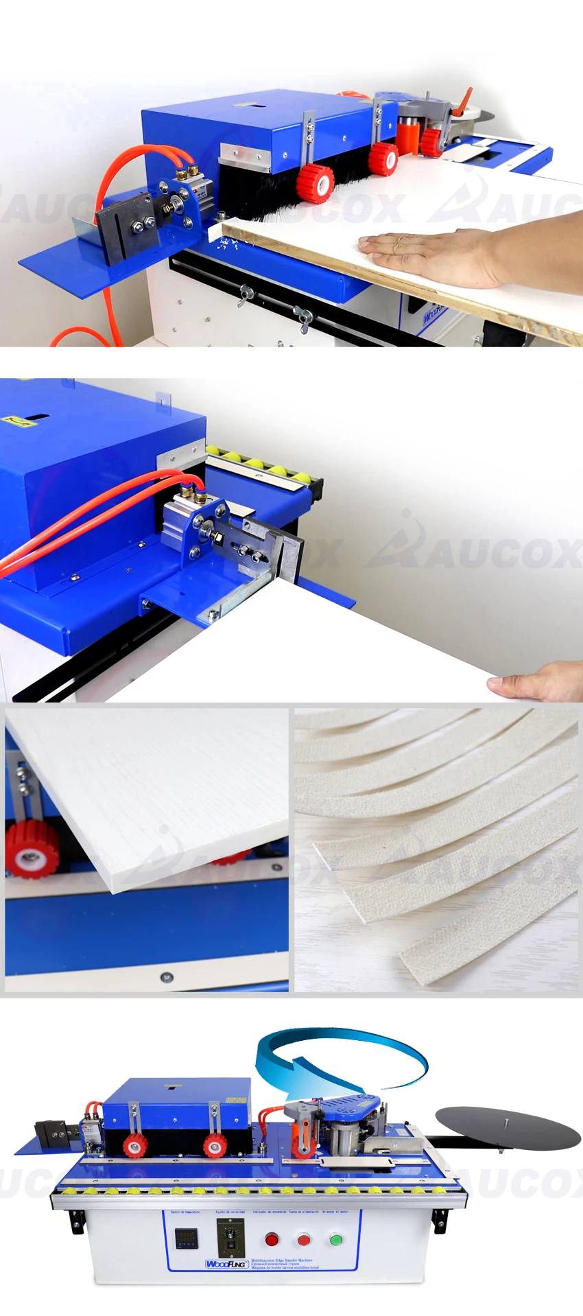 This machine is suitable for medium density fiber board, blockboard, wood panels, particleboard, plywood and other polymer doors, straight edge trimming, disposable with double-sided adhesive tape cutting edge bonding edge pressing, block, chamfer, Tinker, finishing, polishing and other functions of scraping edge, edge smooth, smooth, feel good sealing wire, flat and smooth. The equipment operation is stable, reliable and durable, is especially suitable for large and medium-sized furniture, cabinets and other furniture manufacturers plate using.