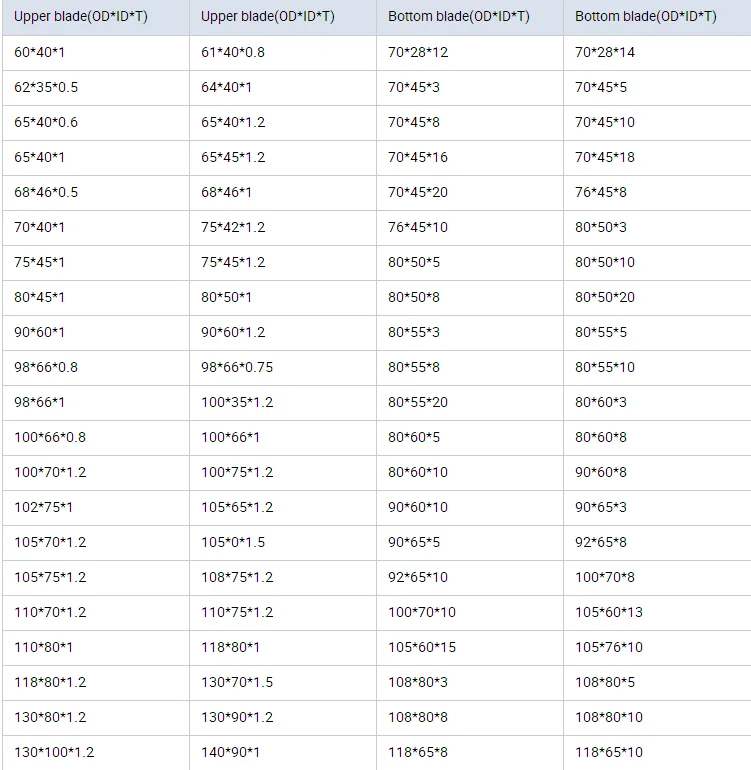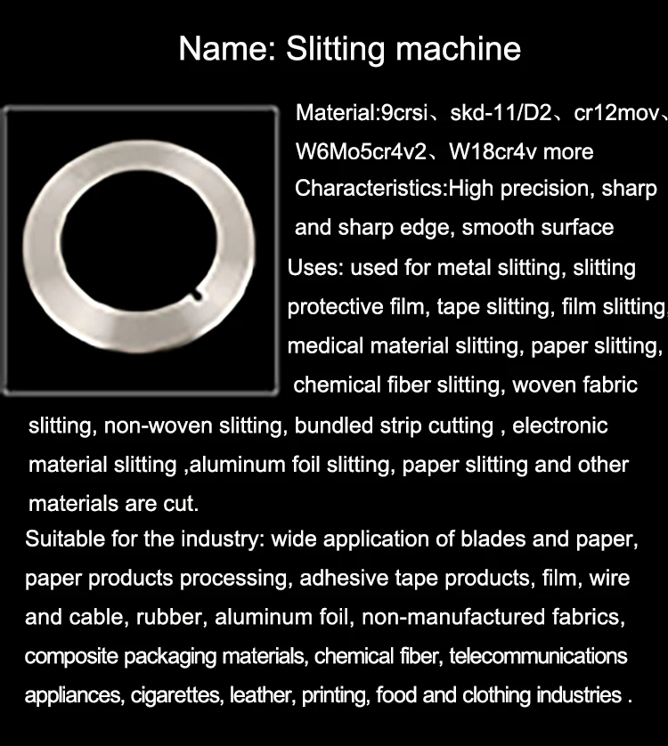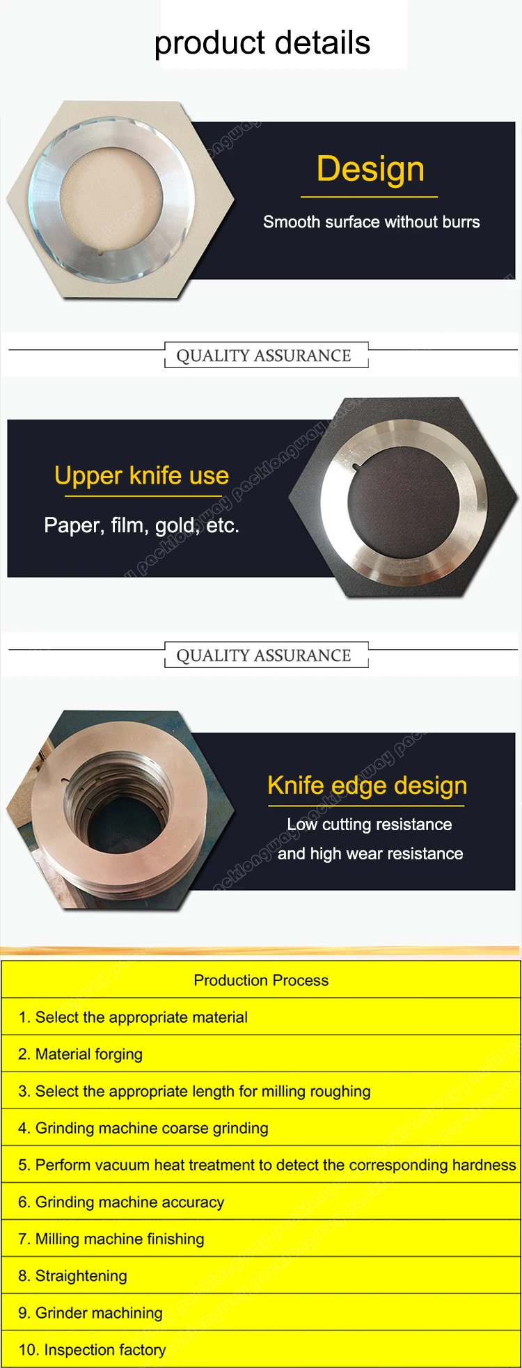 | Type: | Top,bottome; | Product Name: | Disc circular knife blades of cutting plastic film top cutter knives; |