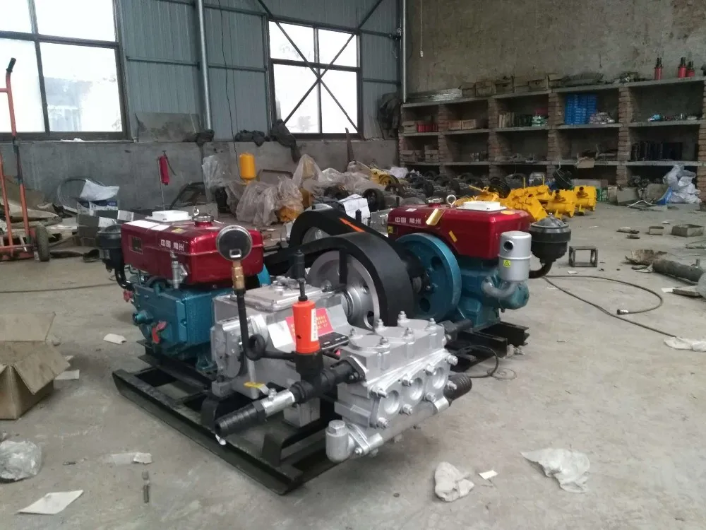 1. A horizontal, triplex, single acting reciprocation piston pump. The pump can choose diesel motor
