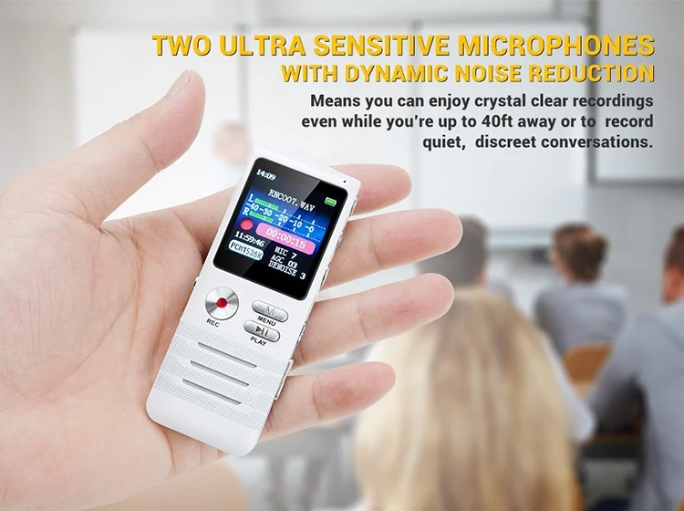 Ultra Sensitive Double Microphone Clear Audio 1536 kbps Voice Recorder Recordings 8GB 16GB
