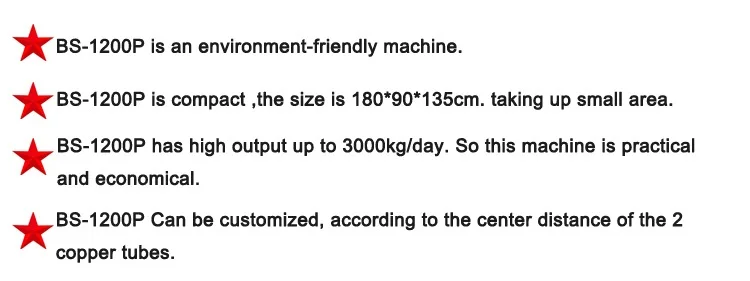 | Output | 3000KG/day copper/aluminum pipes radiator separate machine |