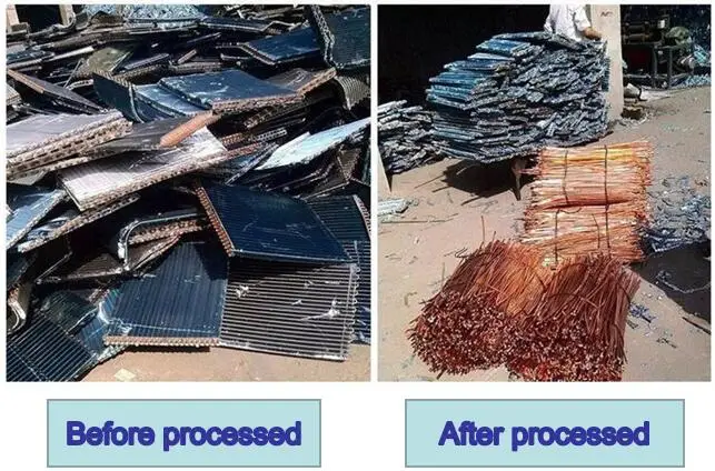 3. After radiators are taken into the machine, copper pipes and aluminum are separated and come out of the machine automatically.