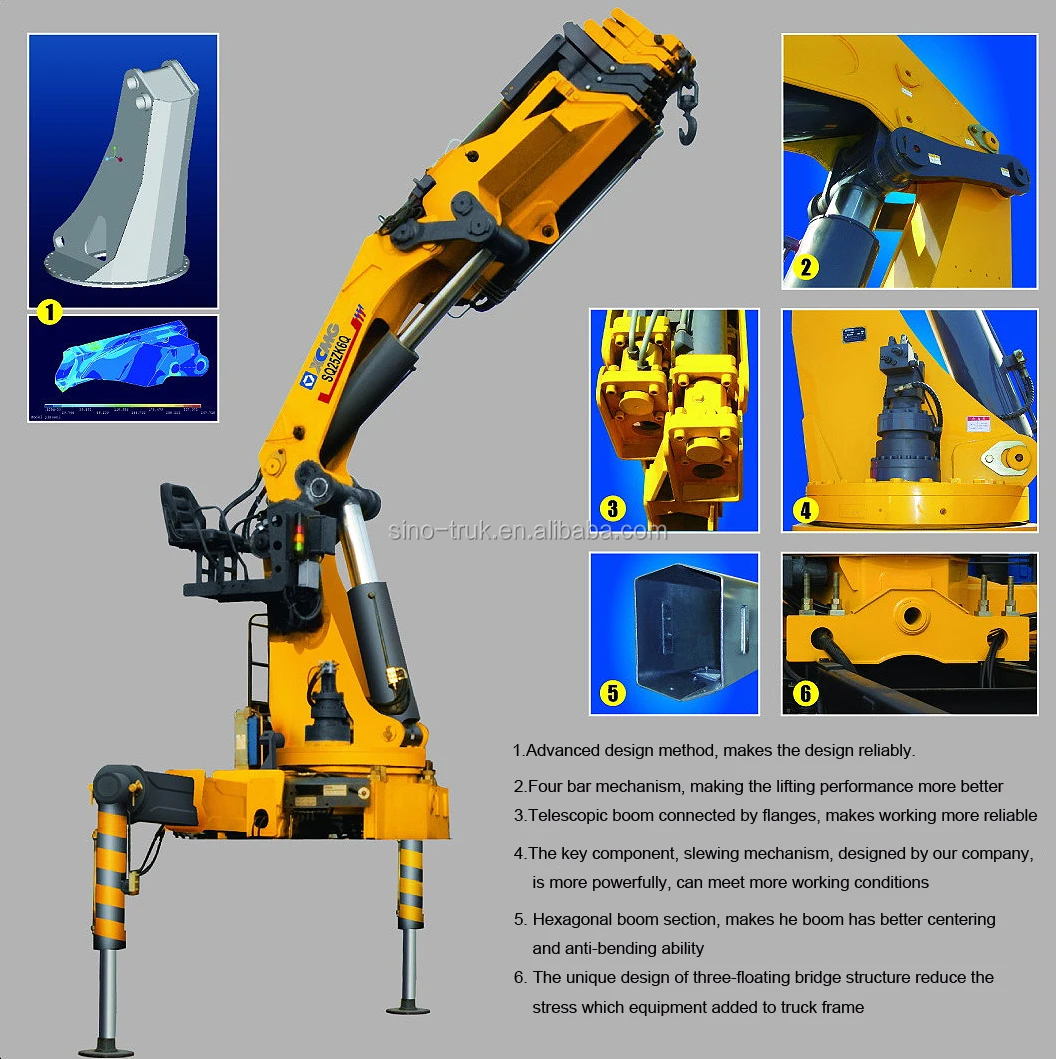 | Product name: | SINOTRUK 8 10 12 16 ton truck mounted crane with high lifting height; | Brand Name: | SINOTRUK; |