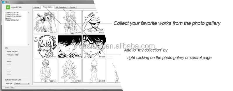 The laser engraver printer machine printer is a bisic engraving machine, It is designed for windows. The machine powered by a 5V2A power adapter. The model supports parallel control and supports automatic recognition of 2pin laser and 4pin laser. These extensions provide more application scenarios for users.